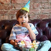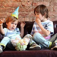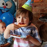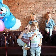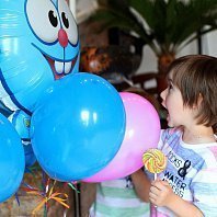 Всем привет! Вот и мы отметили свой двойной День Рождения, т.к. у моих деток он в один день))) Вечеринка была в стиле "Смешарики". Мои детки просто обожают этот мультфильм. День Рождения отмечали в фотостудии, которую украсили шарами, растяжками, картинками... а для стола были стаканчики и тарелочки с изображением любимых героев) Чем угощали деток? Конечно же различными сладостями и ... пиццей! Играли в шарики и мячики, а от дуделок моих мальчишек было не оторвать. Праздник прошел просто замечательно!!! Детки остались довольны!!! А еще к нам в гости приходил медведь ... :) Спасибо Веселая Затея!
